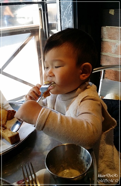 음식을 기다기는 동안 아들을 꼬셔서