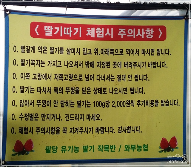 딸기따기 체험 주의사항 입니다.