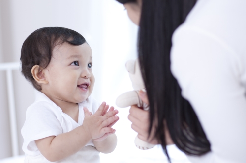 아기에게 높고 밝은 목소리로 말해주세요